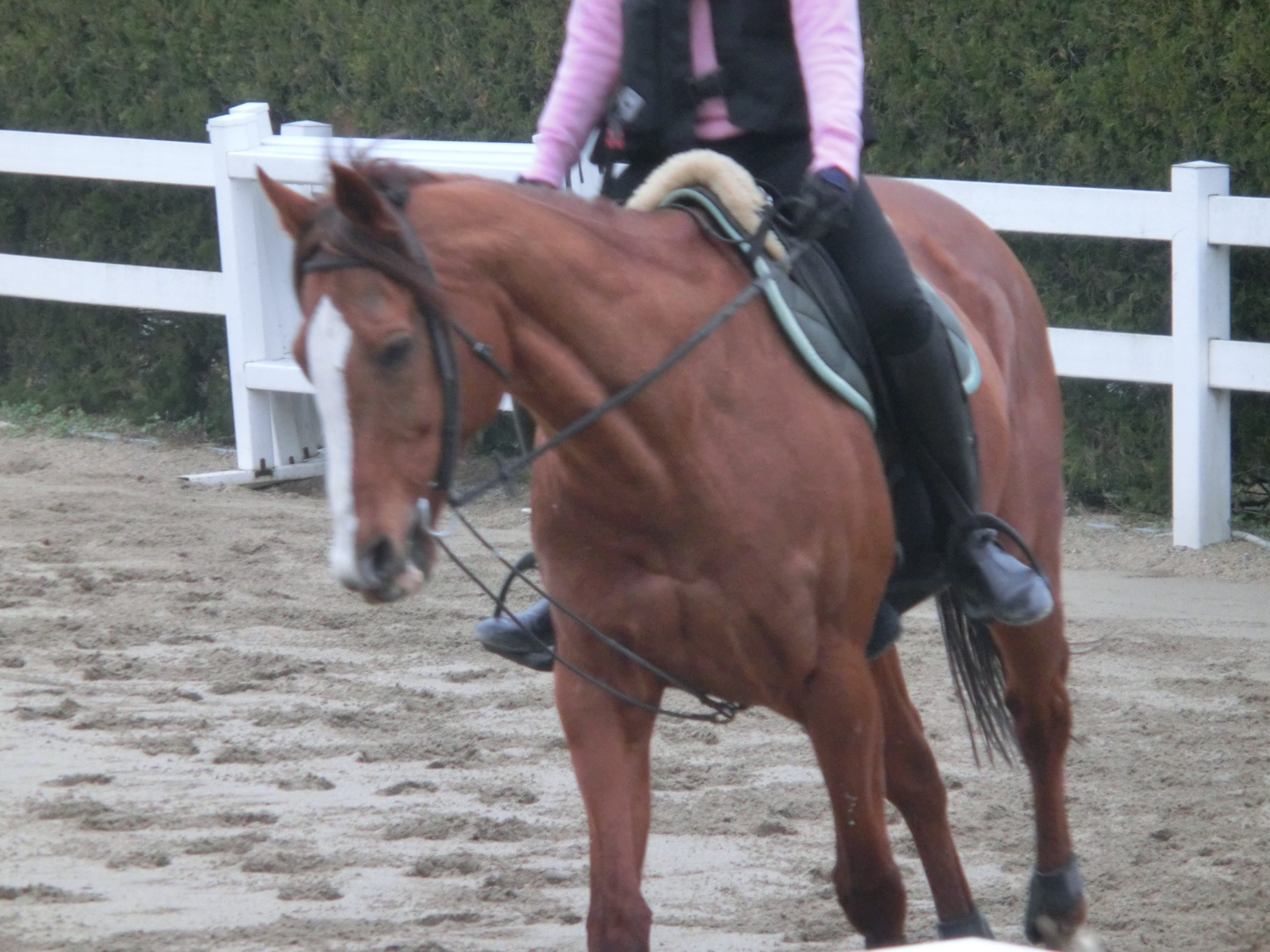 横乗りで障害を飛びつつ疾走する女性が出てきました。びっくり!