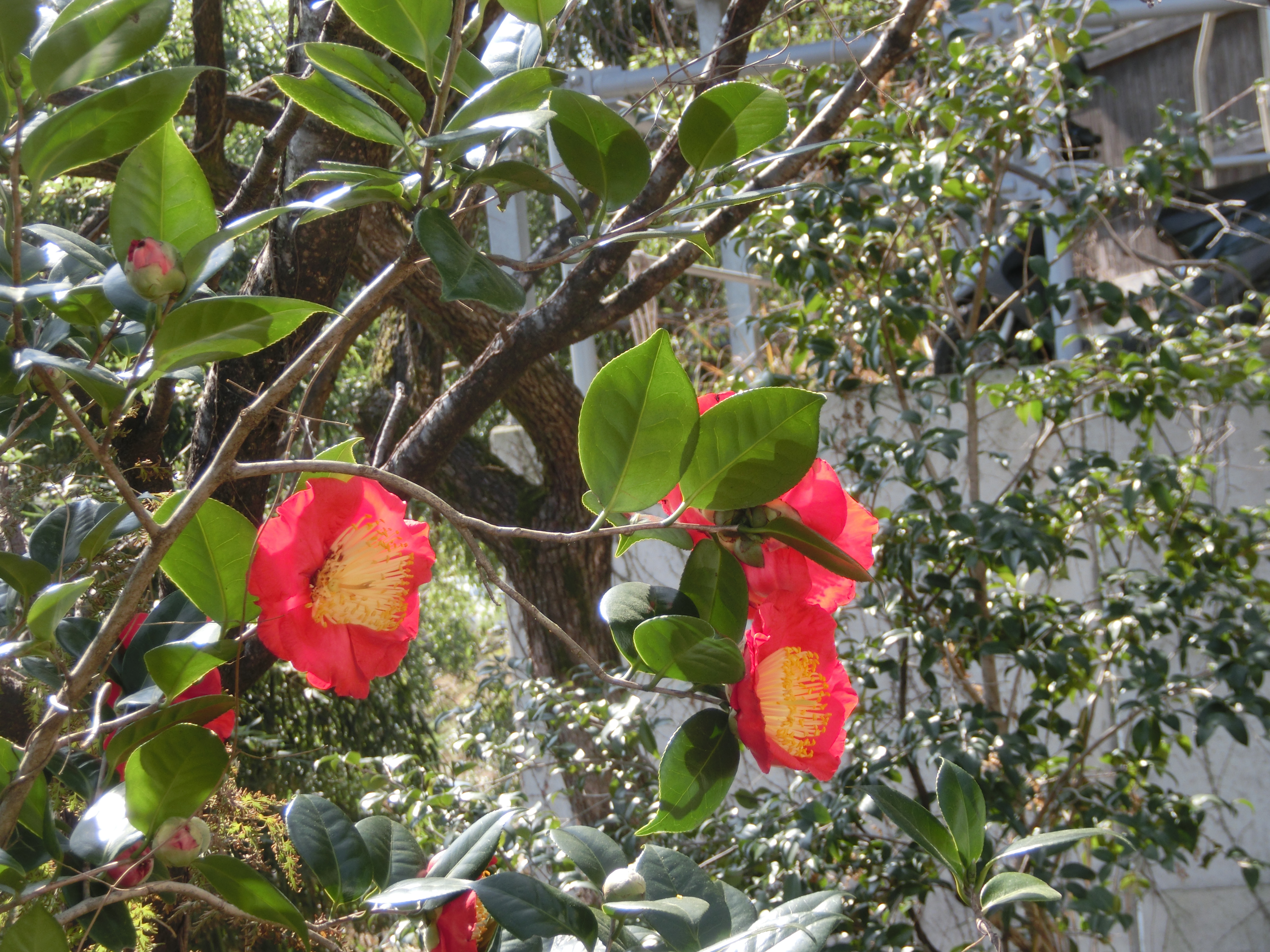 ウォーキングマシンのそばには、椿の木もあります。